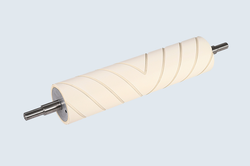 橡胶辊一般由外层胶、内层胶、金属芯、辊颈和通气孔组成,其加工包括辊芯表面毛化、黏合处理、贴胶成型、包布、铁丝缠绕、硫化及表面研磨等工序。